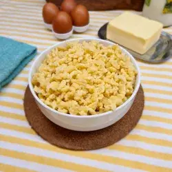 Prosty przepis na domowe spätzle z jajek, mąki i mleka.