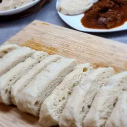 Zacznij dzień wcześniej lub co najmniej 12-18 godzin przed pieczeniem od poolishu: W średniej misce wymieszaj 75 g mąki pszennej typu 550, 75 ml wody i 1 g świeżych drożdży, aż wszystko dobrze się połączy i nie będzie widać suchych grudek mąki.